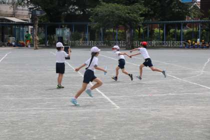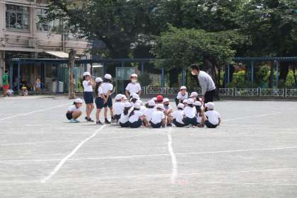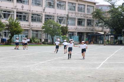3年生体育の様子です。リレーのバトンパスの練習をしています。
