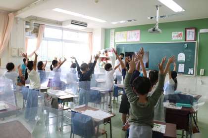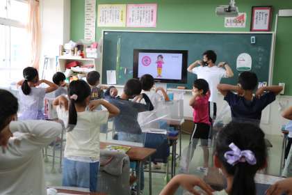 子どもたちの呑み込みは早いです。歌に合わせて楽しそうに体が動きます。