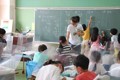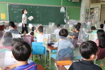 2年生算数の様子です。今日は練習問題に挑戦です。自分で考えた問題は、友達の考えと同じかな?どんなやり方で考えたのかな?答えがあっているかことも大切ですが、答えを導き出すための友達の考え方を知ることも大切な学習です。
