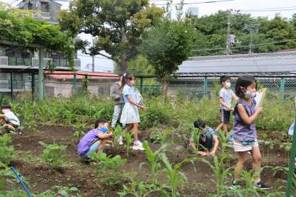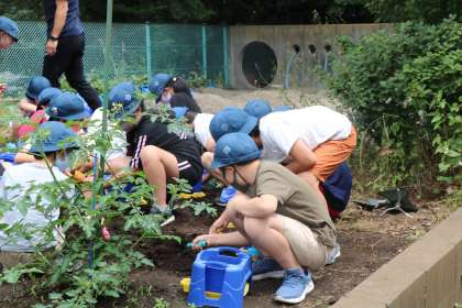 隣の畑では、3年生が理科の学習でホウセンカの種をまく準備をしています。