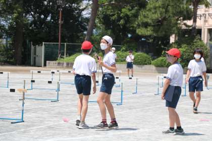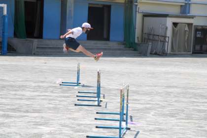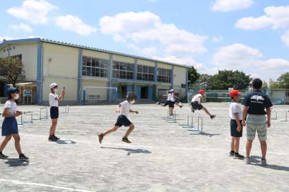 6年生体育の様子です。先生の「いいね}「ナイス」「今の低く飛べていていいよ」などなど言葉かけが励みになり、参考になり、よりがんばる6年生です。