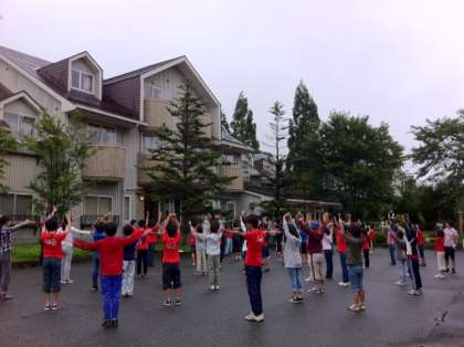 みんな元気に朝会に出席しました。ラジオ体操で心も身体も目覚めました。