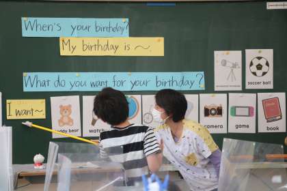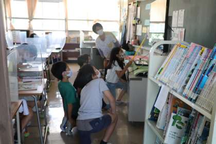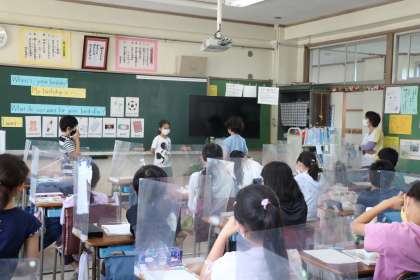 5年生外国語の様子です。会話の様子を聞いていました。定型の言い方を何度も練習した後ですが、みんなの前だと少し緊張気味です。