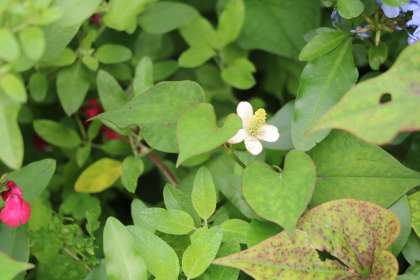 写真は、砧小学校の校庭に咲くドクダミの花です。ドクダミの花には、八重の花もあるのだそうです。かつて砧小学校にいた主事さんから教えてもらいました。