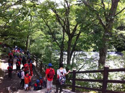 ゴールした後、みんなで竜頭ノ滝を目指します。