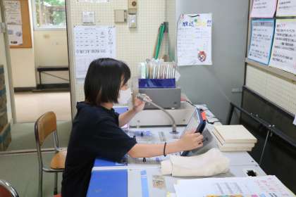放送での全校朝会です。今日は「やるべきことにあきらめず全力を尽くす」という話をしました。全力を尽くす人の力はぐっと伸びます。