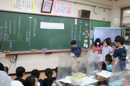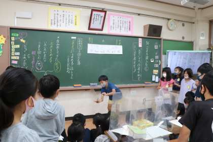 3年生の様子です。国語「こまを楽しむ」の学習の最後です。実際にコマをもってきてくれた子たちに、楽しみ方を見せてもらいました。