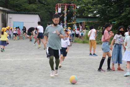 休み時間の校庭は子どもたちの、そして先生の笑顔がいっぱいです。