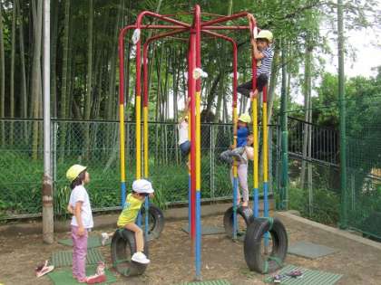 「お外に行ってきまーす!」と今日も元気に園庭へ飛び出していきました。