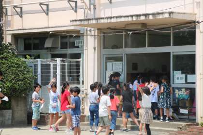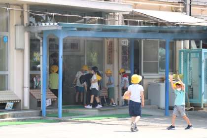 手洗い・うがい、ミストで涼んで、教室に帰ったら水分補給も忘れません。