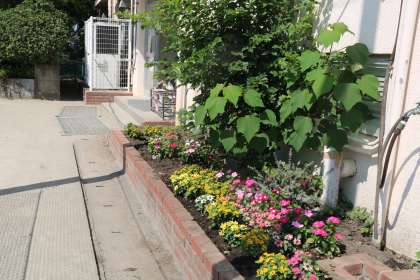 委員会活動の仕事をする高学年です。毎日みんなが楽しみにしている花壇です。