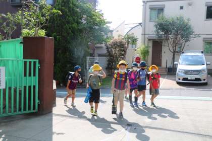 今日も元気に登校する子どもたちを、正門で迎えます。子どもたちがいろいろな話をしてくれるのが楽しいです。