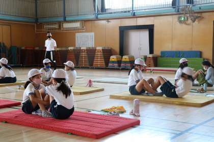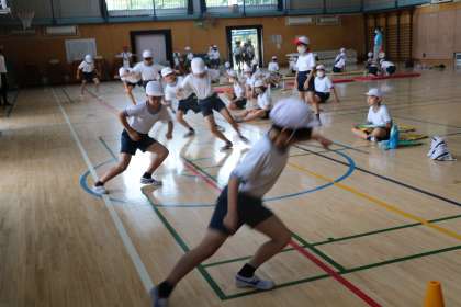 友達に記録を取ってもらいながら一生懸命自分の力を発揮しています。