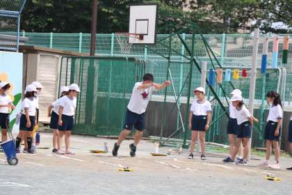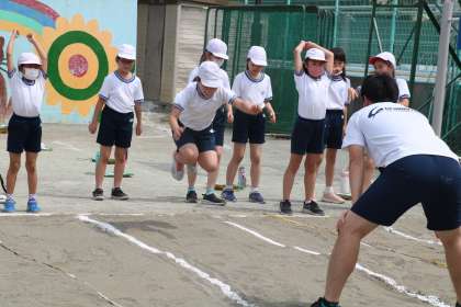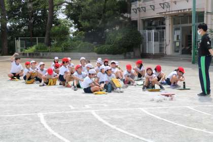 5・6時間目は4年生のスポーツテストです。先生から説明を聞いてすぐスタートです。4年生は友だちどうし記録をを取ります。