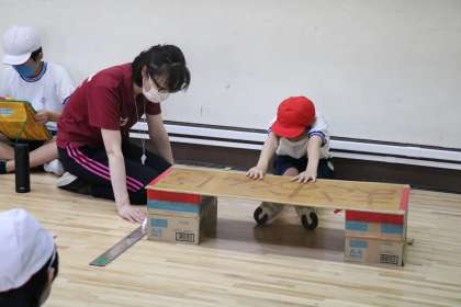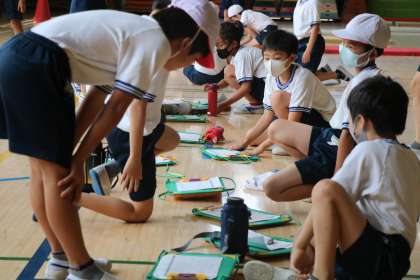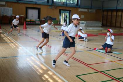 体育館でも、友だちどうし声をかけ合いがんばっています。