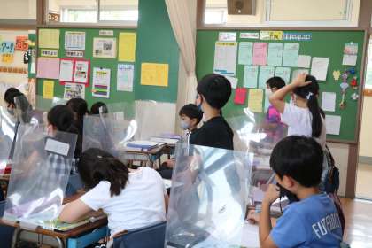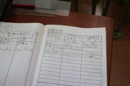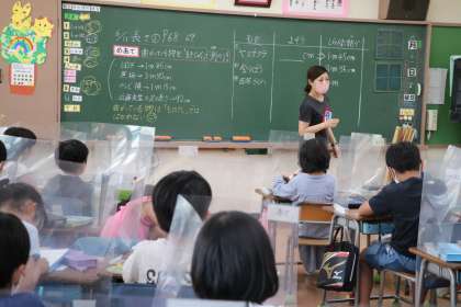 3年生算数の様子です。5時間目に校庭に出て、曲がっているものの長さを巻尺で測りました。6時間目はその振り返りとまとめです。