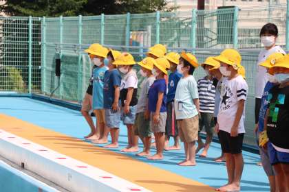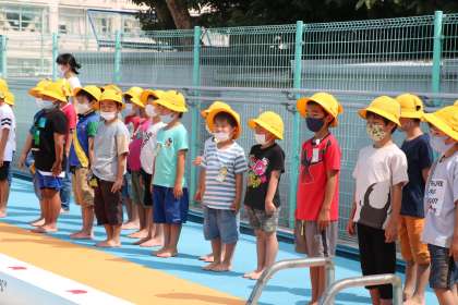 今年度世田谷区からは、水泳学習の際着替えやプールサイドで密集することのないよう十分配慮することを言われています。砧小学校では、学級ごとプールに入ることを基本とし、1学期中の検定はしないことにしました。