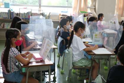 2年生算数の様子です。文章から立式までみんなで考えました。さあ、次は計算の仕方を考えよう。まずは自力で考えます。