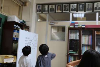 校長室にしかないものは何かな?一生懸命見学しています。