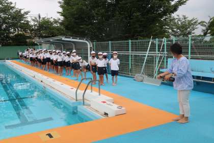 おしゃべりが一切なく真剣に話を聞くみんなの姿から、ケガなく安全に楽しい水泳学習ができると思いました。