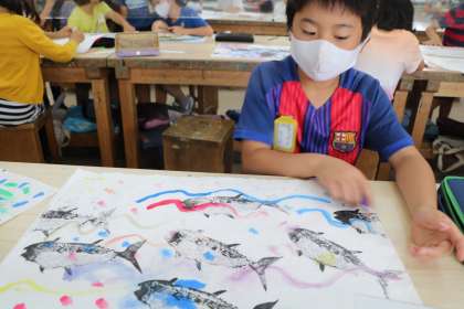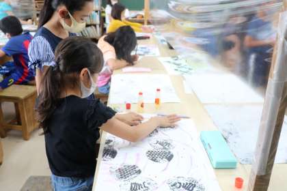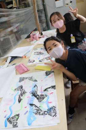 何版も摺っていると、素材の違いによるでこぼこへの力加減がわかって来て、技術も上達してきます。子供たちも大満足の作品でしょう。