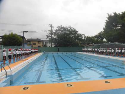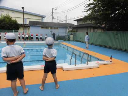 児童代表の言葉を聞き、自分のめあても再確認していることでしょう。安全に楽しい水泳学習にしましょう。