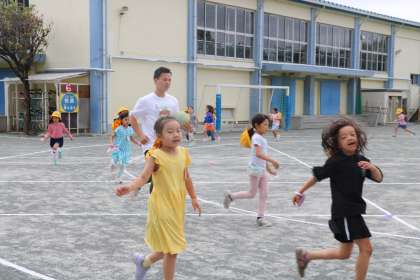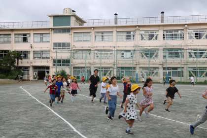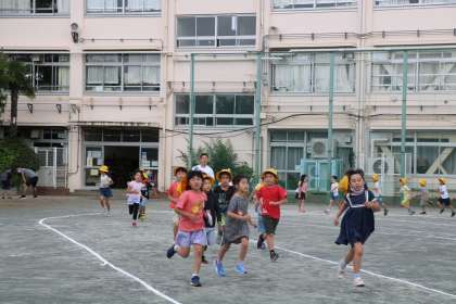 先生や運動委員のお兄さんお姉さんに励まされながら、一生懸命走ります。