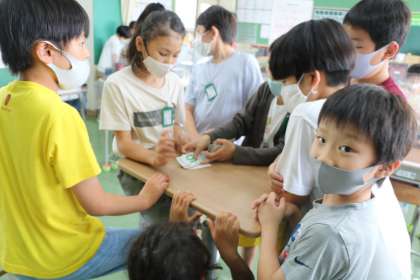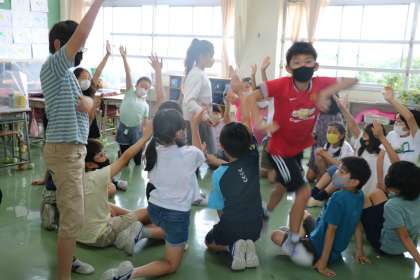 4年生の様子です。誰がいなくなったでしょうか?当てるゲームや、先生と一緒にカードゲームや、笑顔いっぱいです。