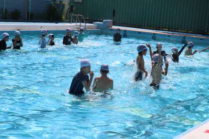 4年生体育の様子です。今日は朝から良い天気で、水温・気温とも水泳学習に充分でした。