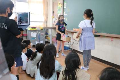 今日は3年生から創作劇発表会を観に来てほしいとご招待を受けたので昼休みに行って来ました。声も大きく、セリフもはっきり、お話の展開も続きが期待できそうな楽しい劇でした。子どもたちの主体的な活動を仕掛けるのは担任ですが、試行錯誤して実際に形にしていく子どもたちに大きな拍手を送ります。