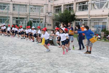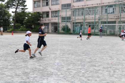 だんだん人数が減ってきて、まだがんばっている友だちはみんなで声援を送ります。先生も一緒に走り、体調を見ながら声をかけます。