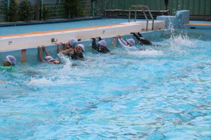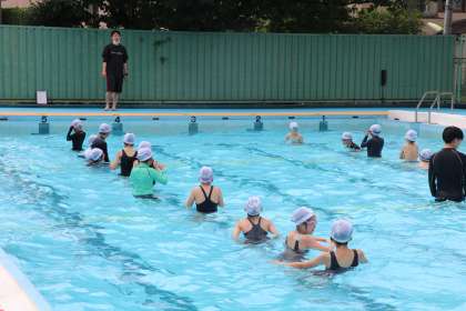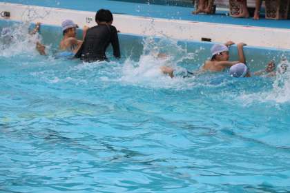 4年生の体育・水泳学習の様子です。時間を追うごとに気温が上がり蒸し暑くなり、プールの水が気持ちよい1日です。