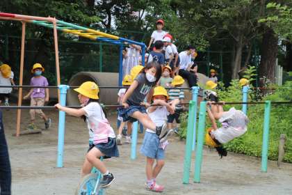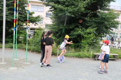 砧小学校では、始業前の朝遊びや休み時間の外遊びに毎日取り組んでいます。うんていや登り棒、一輪車で遊んでいる子どもたちもいっぱいです。「健康・体力づくり」の原点は外遊びです。丈夫な体をつくり免疫力を高め、元気いっぱいに過ごしてほしいです。。