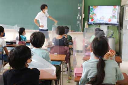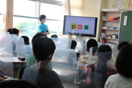 火曜日の朝は、1・2年生は朝学習、3・4年生は国語学習、5・6年生は外国語学習の日です。写真は