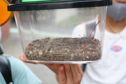 今朝のお土産は、カナヘビとトカゲだそうです。アサガオの水やりも忘れません。