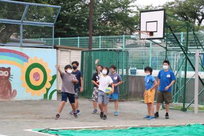 固定遊具で遊んだり、バスケットゴールで遊んだり。