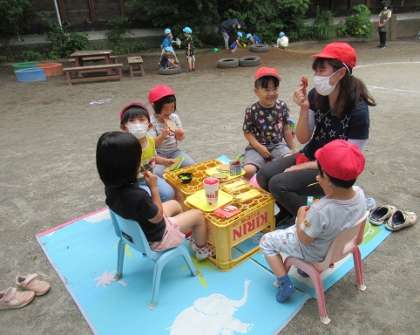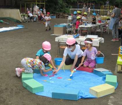 午前中は気温があまり上がらずプールには入れませんでしたが、外でいっぱい遊びました。