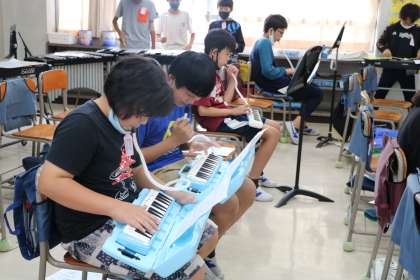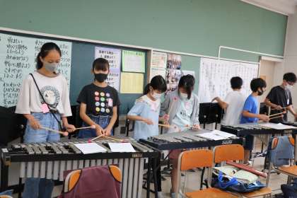 6年生音楽の様子です。「ラバースコンチェルト」の合奏練習をしています。それぞれ分担の楽器で譜面を見ながら真剣に練習しています。