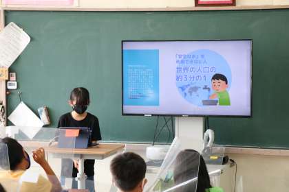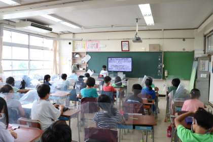 5年生総合の様子です。今週は、それぞれが調べパワーポイントにまとめたことを発表します。友達の発表に対して、よかったところ気が付いたところを伝えます。発表する子はもちろん聞いている子たちも真剣です。
