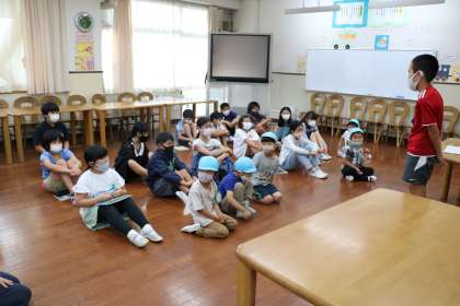 はじめのあいさつをしたら、さっそくペアごとに自己紹介をし、遊び始めます。