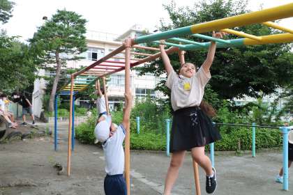 毎日鉄棒、うんていを頑張っている子もいます。1本〜2本、また1本と、うんていができるようになり、半分までできるようになりました。