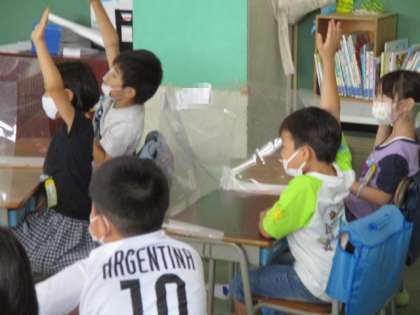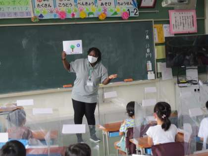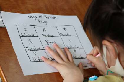 1年生外国語活動の様子です。曜日の言い方を教わったらビンゴゲームに挑戦です。