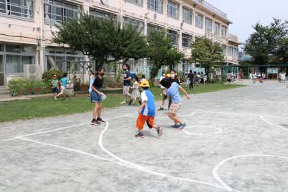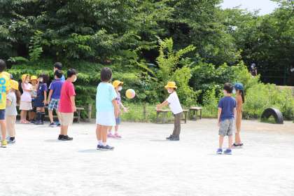 遊びが始まります。ドッジボール、島おに、鬼ごっこ、様々です。