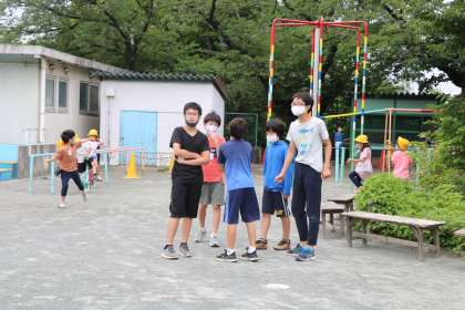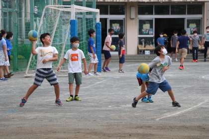 朝遊びの様子です。砧小の子どもたちは1年生から6年生まで、体を動かして遊ぶのが好き子がたくさんいます。朝から脳が活発になり、1時間目からの勉強も頑張れます。