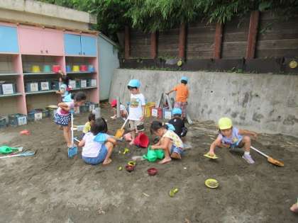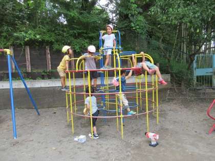 今日は暑い一日でしたね。こんなに暑い日も、砧幼稚園の園庭は木陰があるので気持ちよく遊ぶことができます。子どもたちは元気いっぱい!!