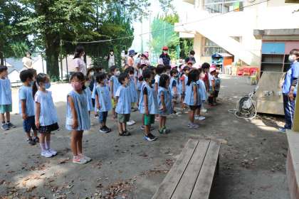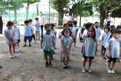 幼稚園は今日が終業式です。夏季プールなどがありますが、明日から夏休み、一つ節目です。4月初めての集団生活に涙が出てしまう子もいましたが、今では笑顔で登園している姿、終業式で私の顔をしっかり見てお話を聞く姿、「前へならえ」の先生の声に真っすぐ並べる姿に成長を感じます。