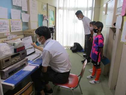 終業式は、放送で行いました。副校長先生の司会に、私の話、そして児童代表は3年生の2人です。