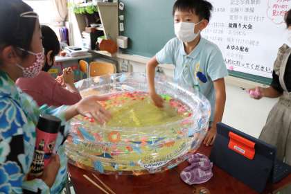 私も、お楽しみ会のご招待を受けて盆踊りの合間におじゃましてきました。子供たちが自分で考え楽しんでいる様子が嬉しかったです。