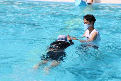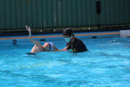 気温が31度、水温31度、WBGTの数値も30分おきに確認しながら実施しました。プールに入った子供たちから「ぬるい〜」という声が聞こえました。