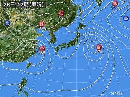 「東の海上を北よりに進んでいる台風8号は、今夜には関東の東に進み、あすは関東甲信や東北に上陸する恐れがあります。北陸や関東甲信、東北は今夜から次第に雨が降り出すでしょう。あすは雨や風がさらに強まり、荒れた天気となりそうです。土砂災害や低い土地の浸水、川の増水や氾濫、暴風や高波に警戒して下さい。」